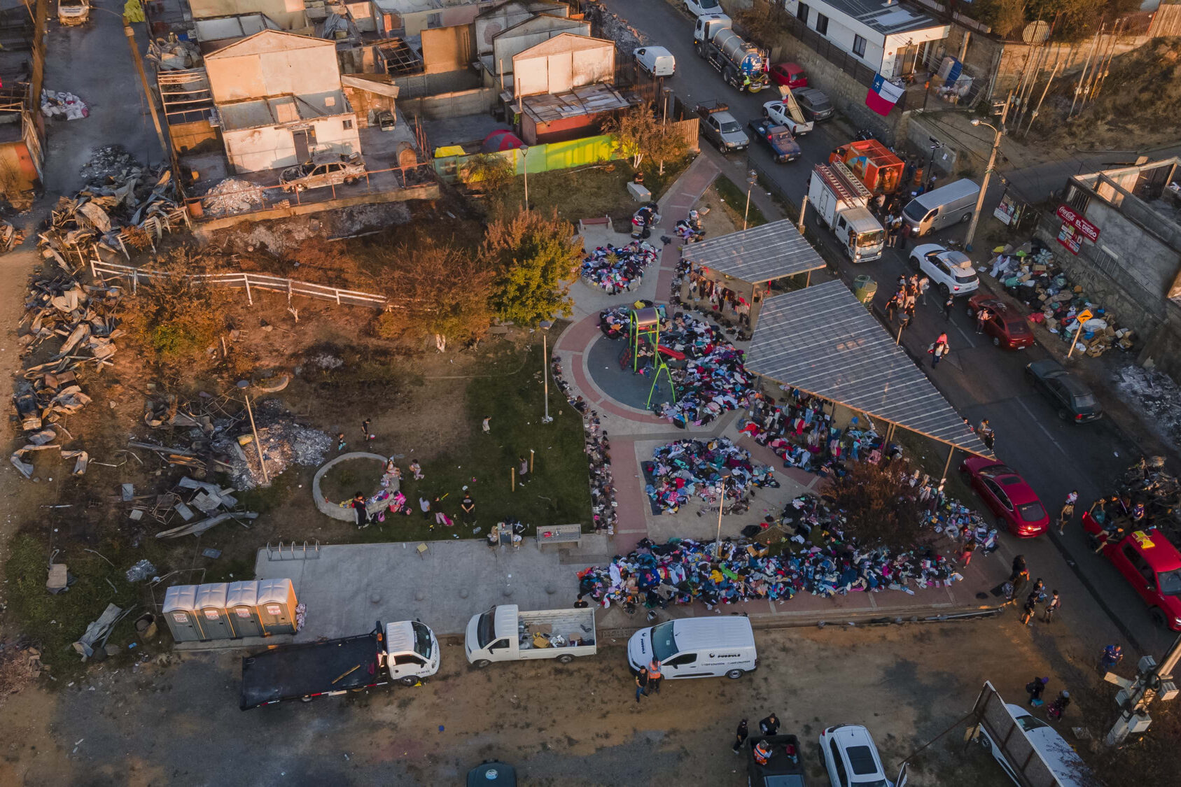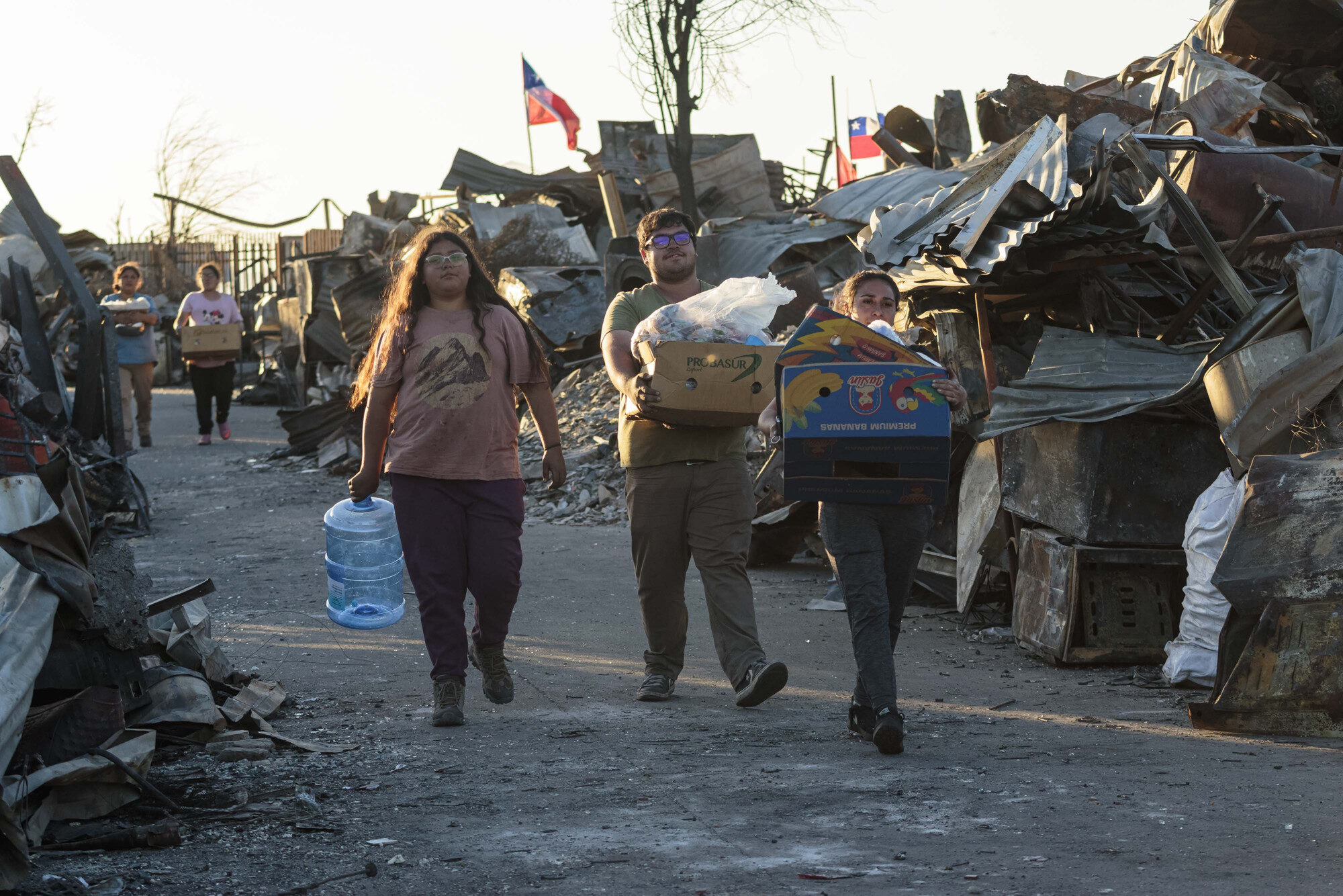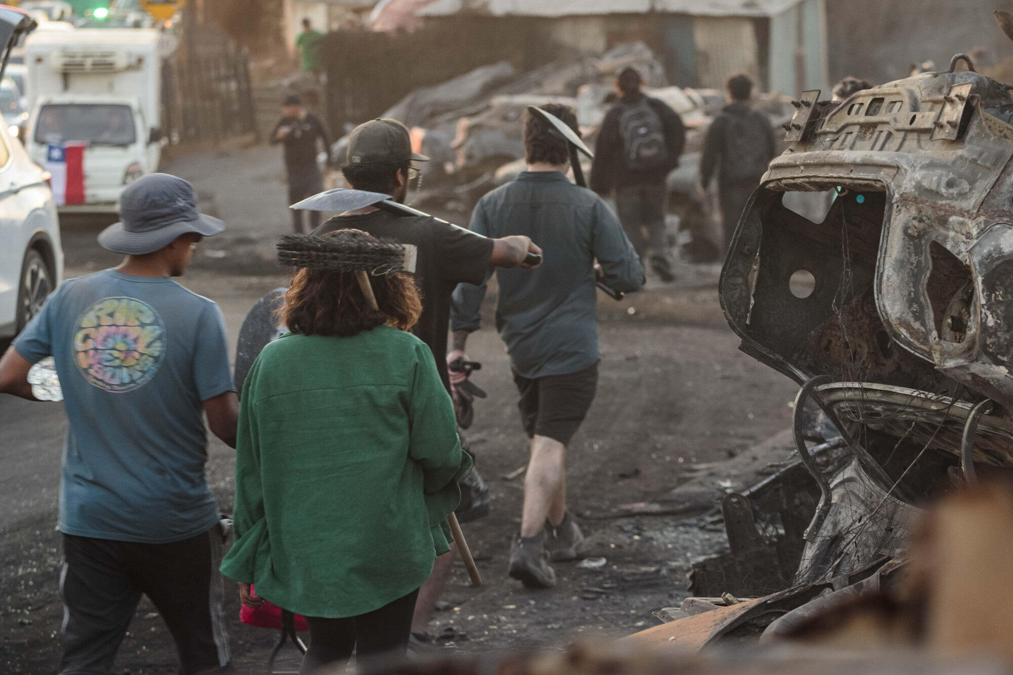 En tanto, el panorama en los cerros de Lirquén es de una actividad incesante. Muchos voluntarios, venidos de distintos lugares del país, se transforman en un solo cuerpo para despejar las calles y terrenos de escombros, junto a personas que ayudan en alimentación, clasificación de ropa, entre otras actividades.