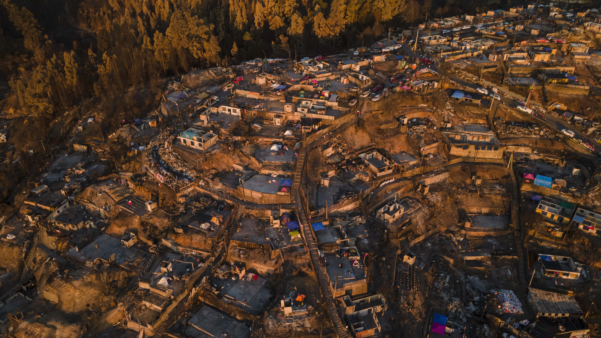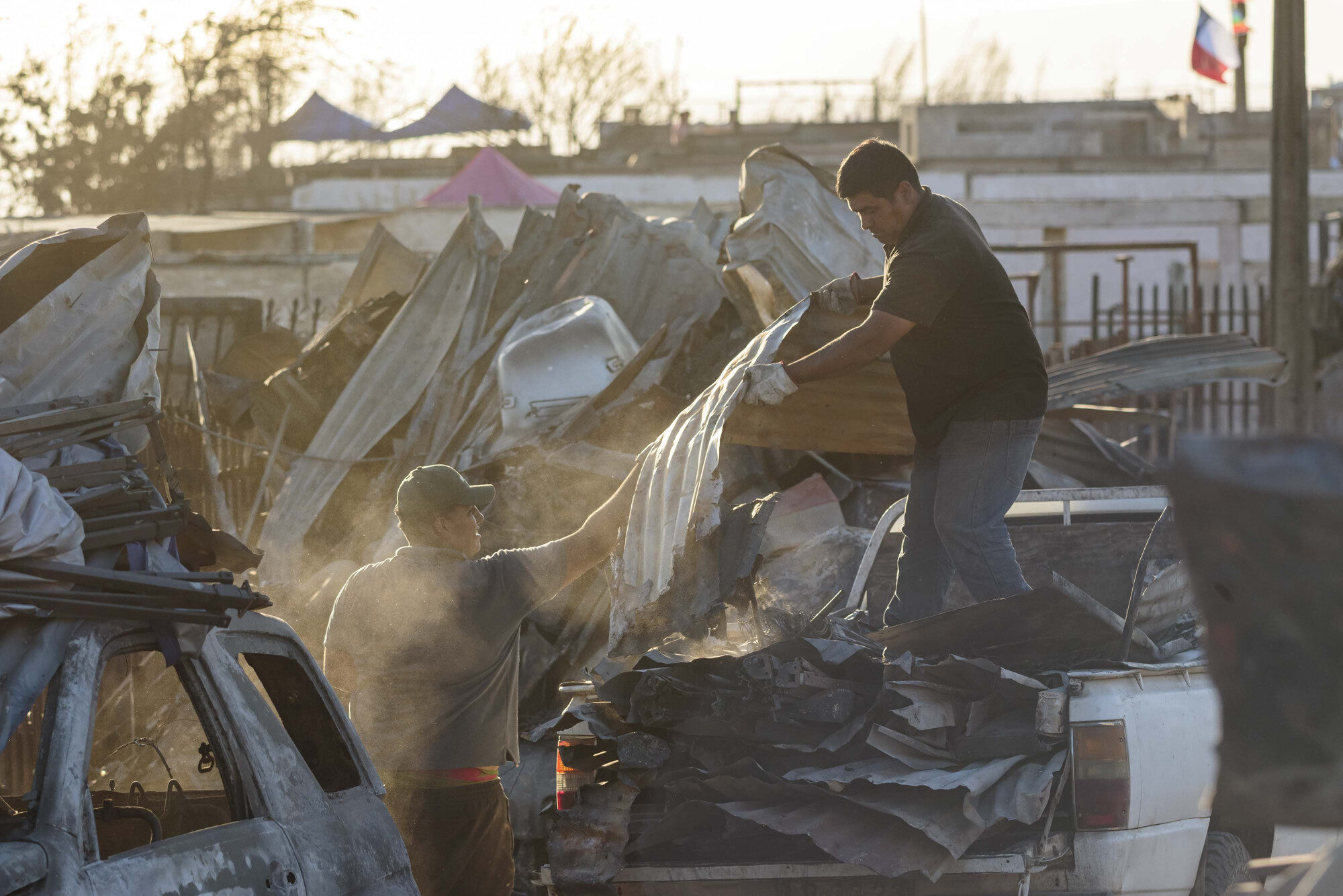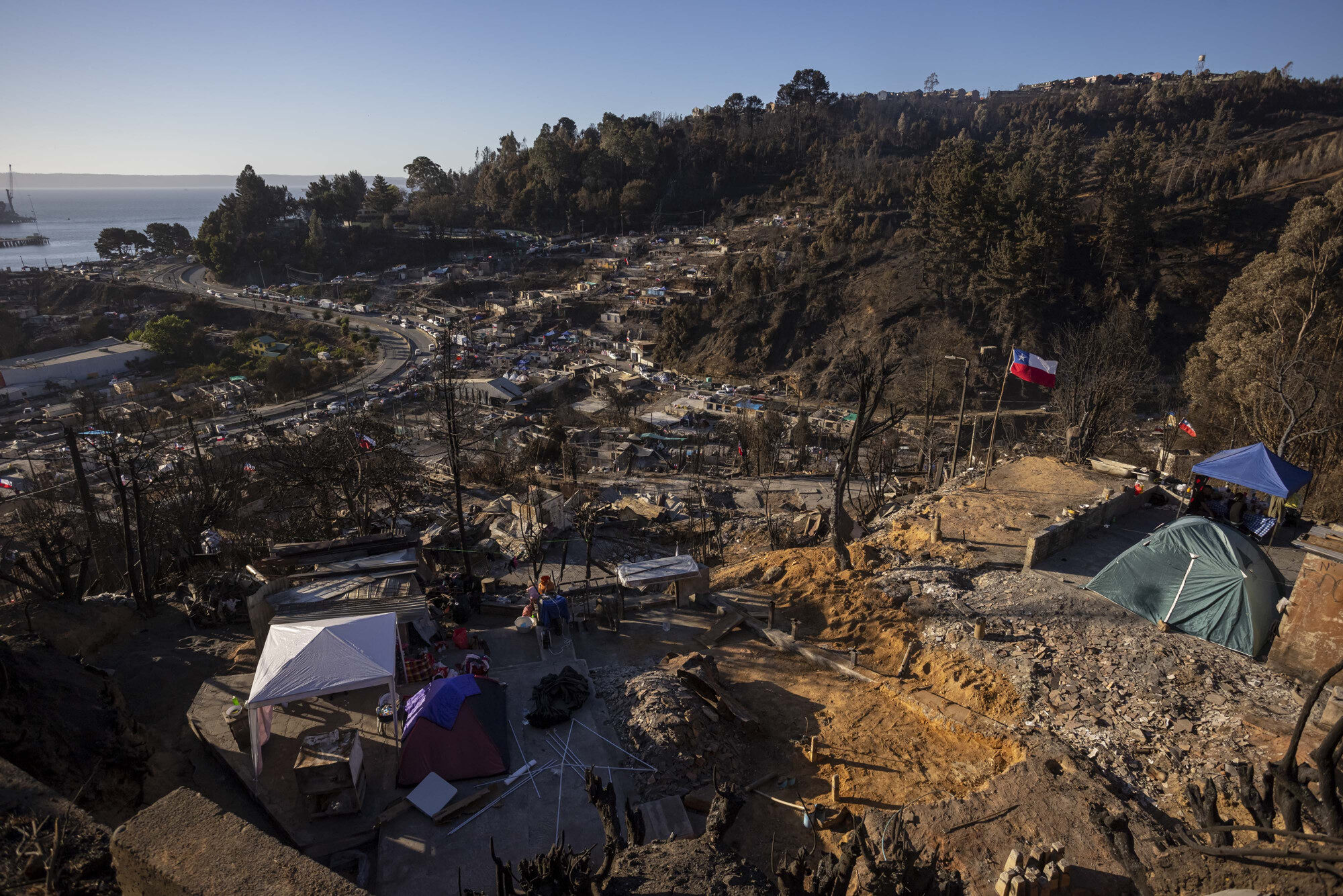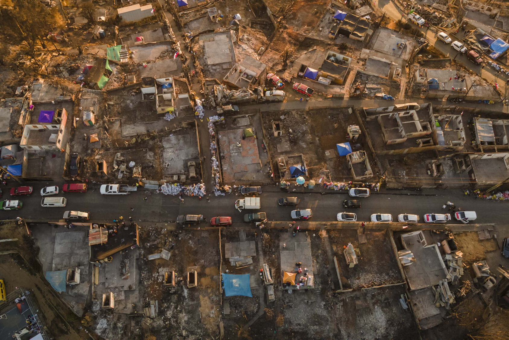 En tanto, el panorama en los cerros de Lirquén es de una actividad incesante. Muchos voluntarios, venidos de distintos lugares del país, se transforman en un solo cuerpo para despejar las calles y terrenos de escombros, junto a personas que ayudan en alimentación, clasificación de ropa, entre otras actividades.